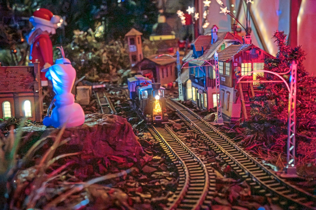 Gartenbahn in beleuchteter Weihnachtskulisse in Wendlingen