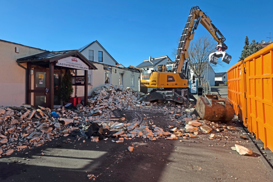 Die Aufräumarbeiten auf dem Gelände haben begonnen. Drei Monate ist es her, seitdem ein Brand die Gaststätte „Albblick“ und das Vereinsheim der Kleintierzüchter komplett zerstört hat.