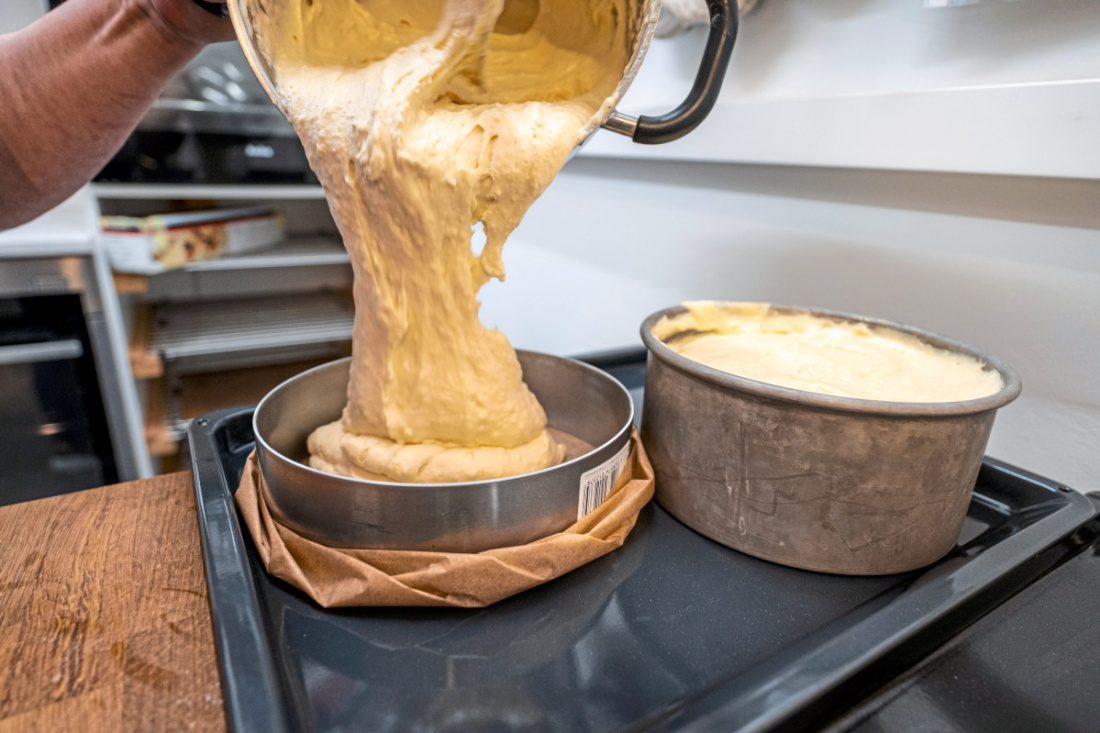 ... und die Masse wird vorsichtig in die Backform gegeben. Foto: Michael Zaiser