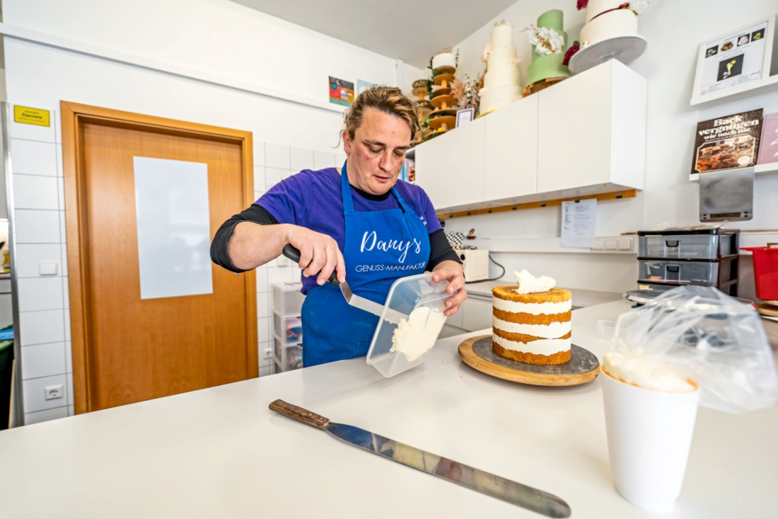 In Danys Genuss-Manufaktur entstehen aus Biskuit, Sahne, Fondant und Marzipan individuelle Kunstwerke. Wie kam die Einzelhandelskauffrau zur Konditorei?