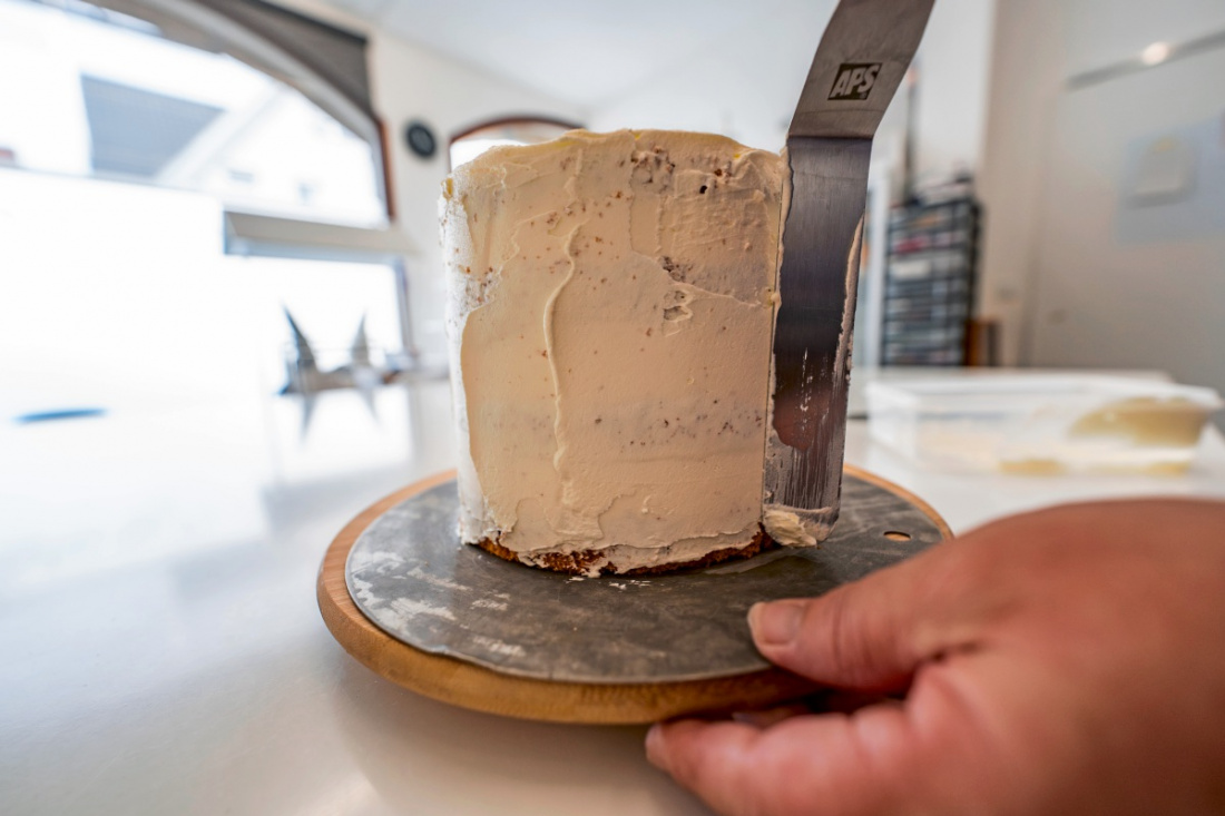 Im nächsten Schritt wird die Torte eingestrichen. Foto: Ralf Just