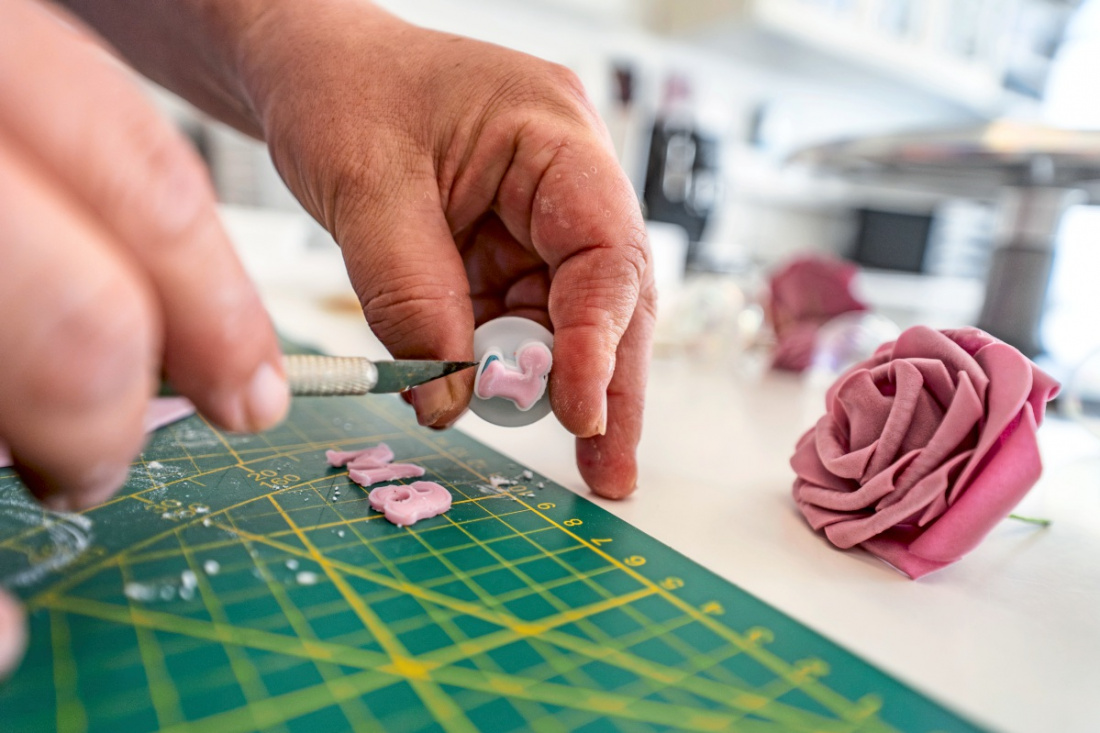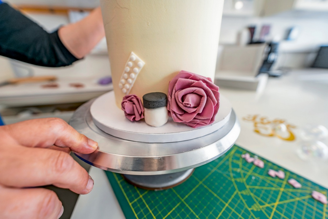 Parallel beginnt Daniela Gonser mit den Detailarbeiten für die Tortenverzierung. Foto: Ralf Just