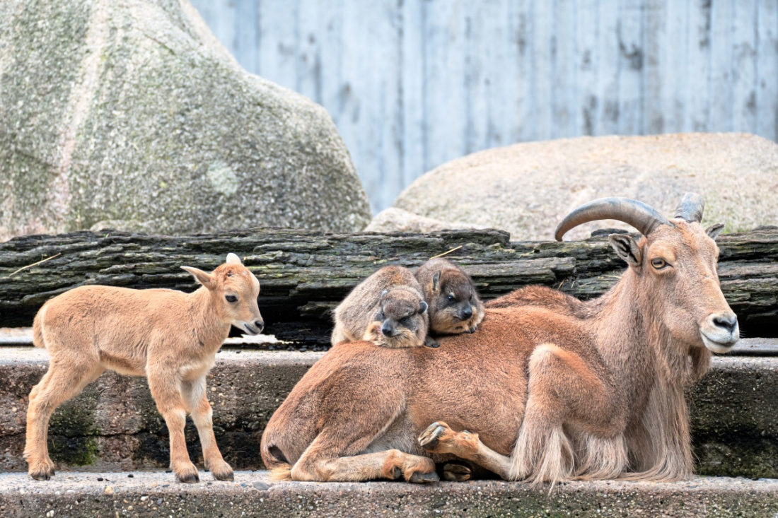 Bei den Mähnenspringern hat sich Nachwuchs eingestellt: Seit Ende September klettert ein Jungtier zwischen seinen Artgenossen umher.