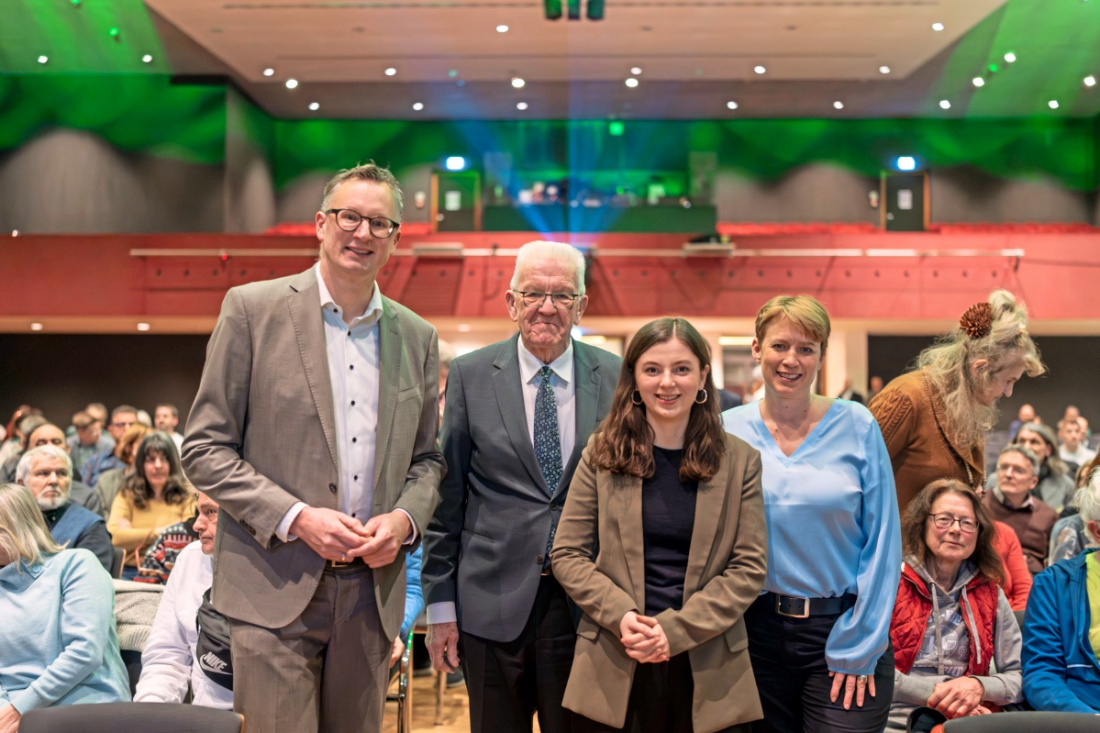 Die drei Landtagskandidaten des Kreises nutzten die Bühne für den Wahlkampf. Der scheidende Ministerpräsident Winfried Kretschmann aus dem Wahlkreis Nürtingen gab seinen Parteifreunden nochmals Schützenhilfe.
