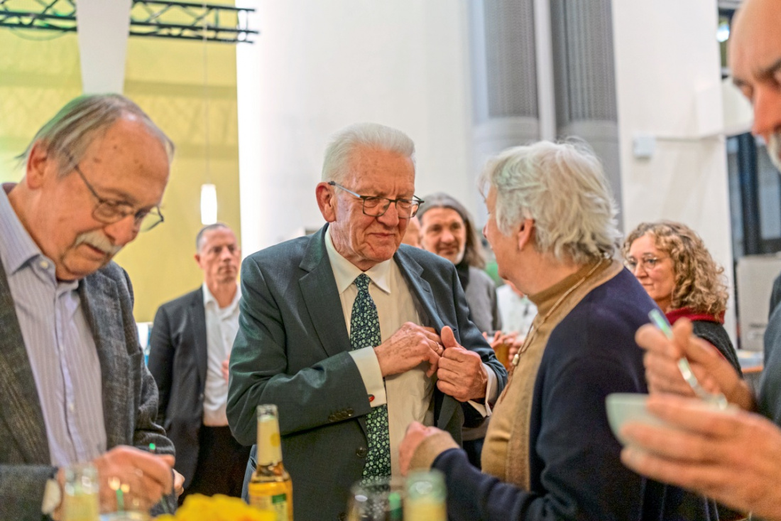 Beim Neujahrsempfang des Esslinger Kreisverbands der Grünen war Ministerpräsident Winfried Kretschmann ein gefragter Gesprächspartner.Foto: Felix Fröhlich