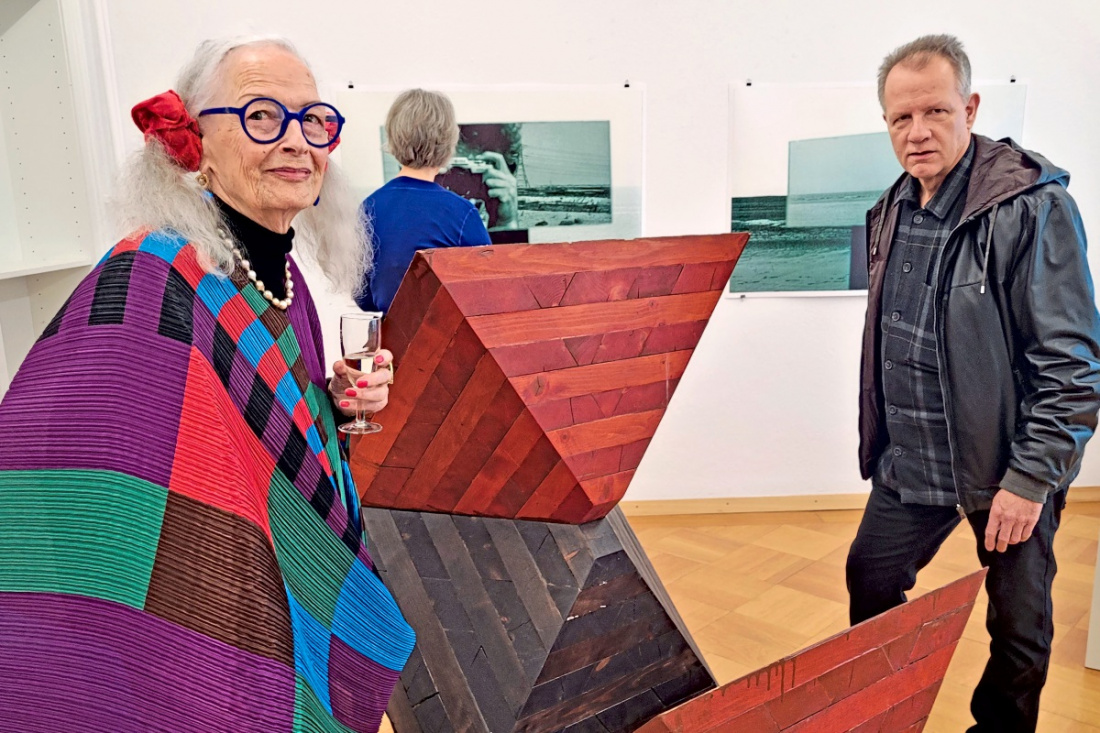 Martin Kistner, Bruder des Künstlers und Verwalter des künstlerischen Nachlasses, und Marielouise Ertlé, Tante des Künstlers, in der Ausstellung in der Ruoff-Stiftung. Foto: Florian Stegmaier