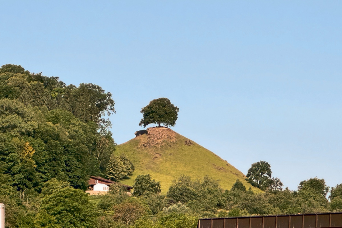 Einsam thront der Baum auf diesem Vulkankegel bei Urach.Foto: Sylvia Gierlichs