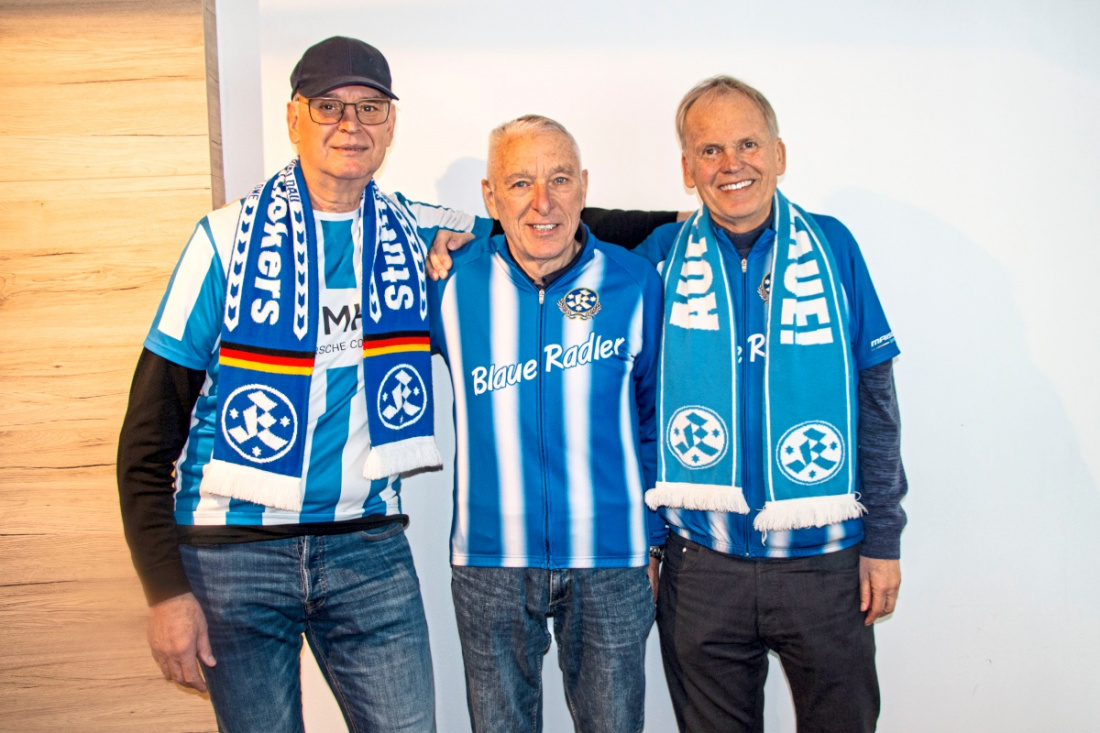 Eingefleischte Kickersfans und „Blaue Radler“: Michael Hauptmann, Hans-Dieter Trotter und Fritz Hundt (von links). Foto: Rudi Fritz