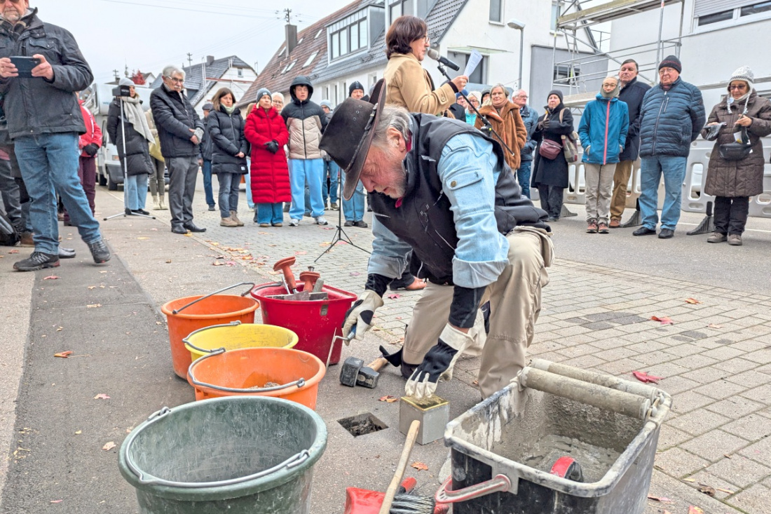 Der Initiator und Künstler Gunter Demnig kam selbst zur Verlegung. Bürgermeister Steffen Weigel würdigte die örtliche Initiative.