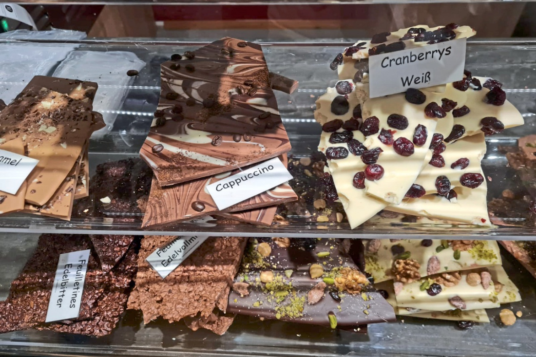 Das kulinarische Spektrum umfasst herzhafte und süße Gaumenfreuden, von Schnitzelweckle und Nudelgerichten bis zu schokoladigen Verführungen. Wärmender Punsch und Glühwein gehört ebenso zum Angebot wie verschiedene Weinvariationen und weitere alkoholische und nichtalkoholische Getränke.