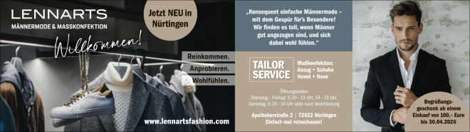In der Apothekerstraße 2 in Nürtingen eröffnet LENNARTS Männermode.