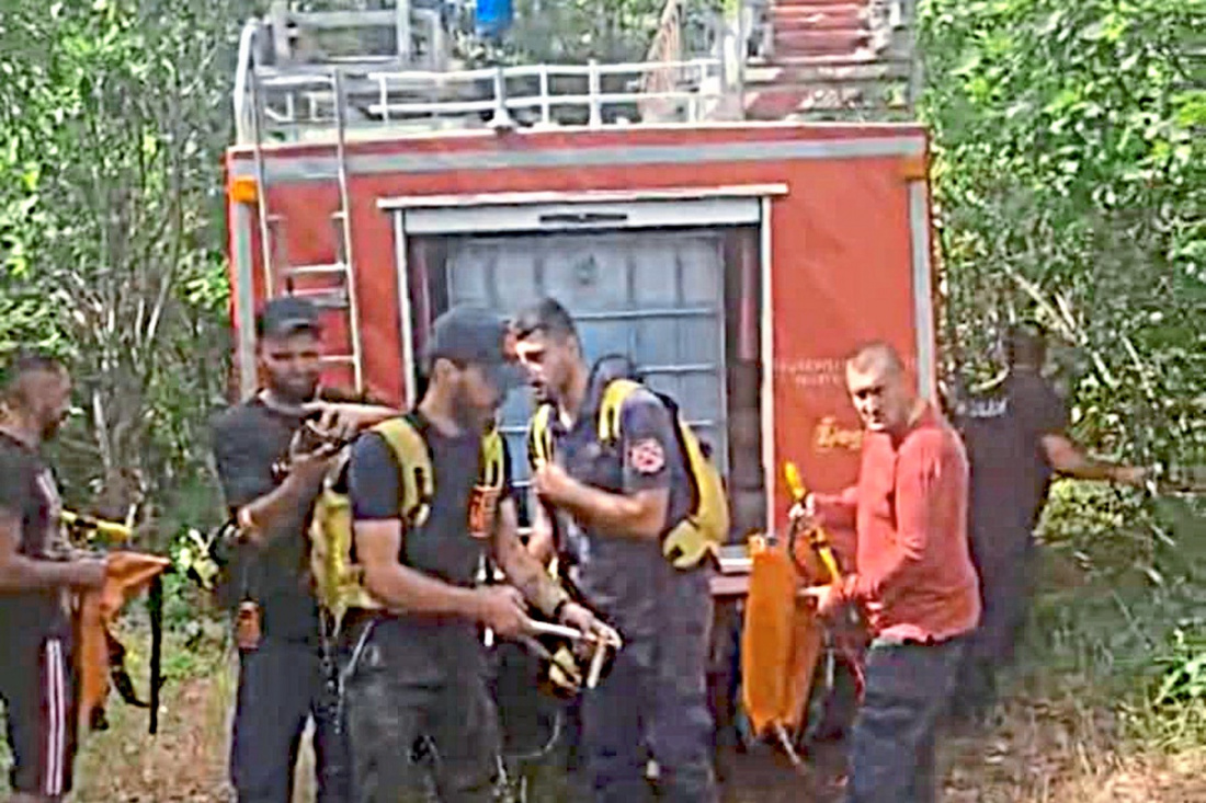 Wieder im Dienst: Das Feuerwehrfahrzeug bei einem Waldbrandeinsatz in Tropoja.Foto: Franz Jungwirth