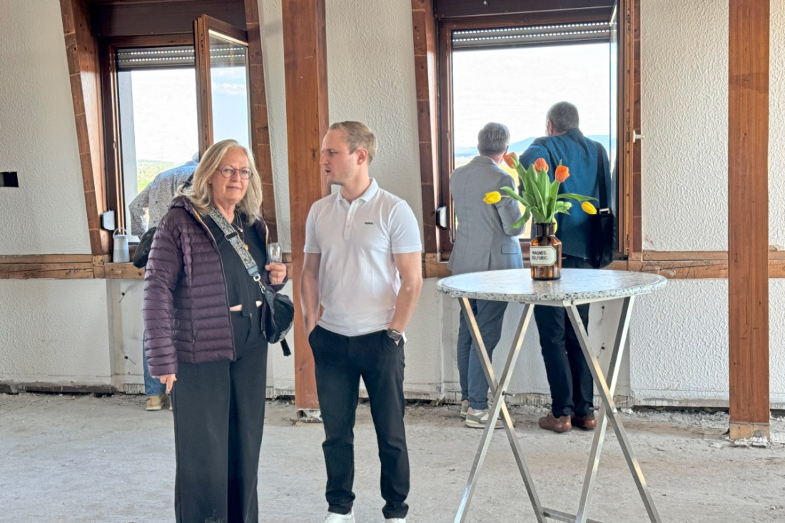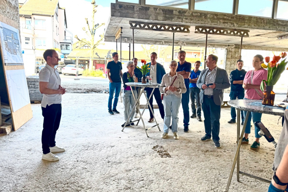 Der Apotheker und Arzt André Renz hat das Volksbankgebäude gekauft und will darin mehrere Arzt- und Facharztpraxen etablieren. Mit einem Baustellenrundgang am Freitag informierte er über die Fortschritte am Bau und das Konzept des Ärztehauses.