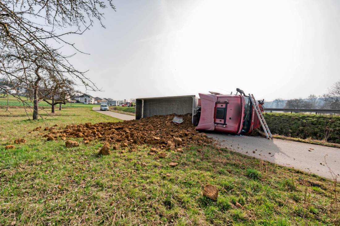 NT-NECKARHAUSEN. Bei einem schweren Verkehrsunfall am Freitagmorgen auf der B297 zwischen Neckarhausen und Neckartailfingen hat eine 60-jährige Autofahrerin ihr Leben verloren. Den Angaben der Verkehrspolizei Esslingen zufolge war die Nissan-Fahrerin kurz vor 9 Uhr auf der Bundesstraße von Neckartailfingen kommend unterwegs, als sie aus noch unbekannter Ursache kurz vor Neckarhausen in den Gegenverkehr geriet und dort mit einem Scania-Sattelzug kollidierte, der von einem 29 Jahre alten Mann gefahren wurde. Dieser hatte noch versucht, den Zusammenstoß durch ein Ausweichmanöver zu verhindern. Der mit Erdaushub beladene Laster kippte nach rechts auf einen Radweg um.