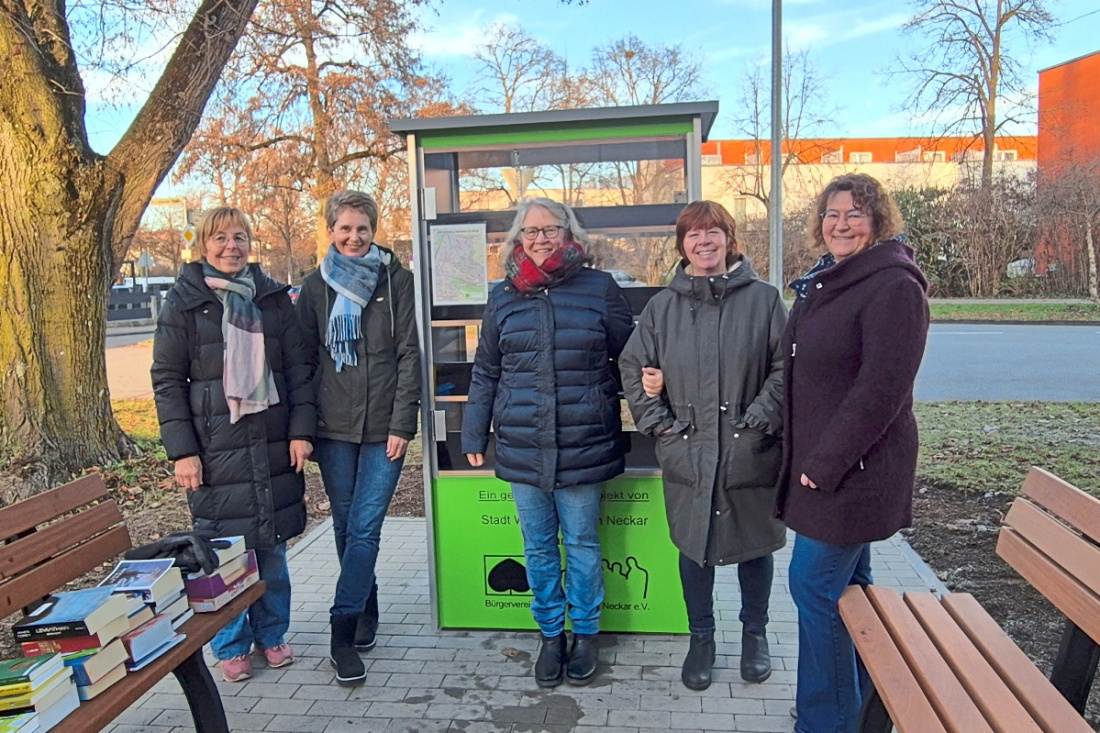 Auch ein solch niederschwelliges Angebot ist ohne ehrenamtliche Helfer nicht möglich. Mit Renate Wiest, Anne Schmidt, Rebecca Aldinger, Ursula Bickele, Claudia Schöttner und Kathleen Härtel haben sich sechs Damen gefunden, die die tägliche Betreuung des Bücherschrankes übernehmen – ein Service, den es auch bei den drei anderen Schränken gibt und ohne den das Konzept der Bücherschränke nicht funktionieren würde.