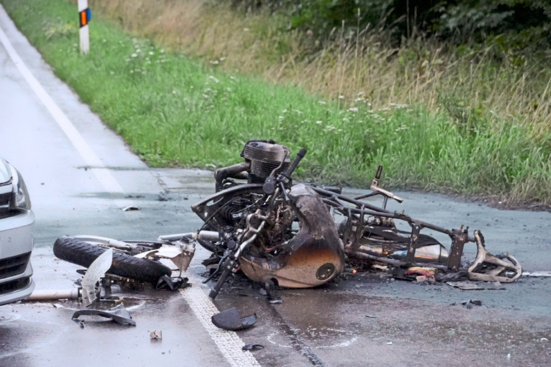 ESSLINGEN. Zu einem schweren Verkehrsunfall ist es am Sonntagabend gegen 18.25 Uhr auf der K1213 zwischen dem Abzweig Kimmichsweiler und dem Abzweig Aichschieß gekommen. Nach derzeitigem Ermittlungsstand befuhr eine 40-jährige VW-Polo-Fahrerin die Römerstraße von der K1267 kommend in Richtung Jägerhaus und wollte an einer Einbuchtung ihr Fahrzeug wenden. Beim Wendevorgang übersah sie einen ordnungsgemäß auf der K1213 in Richtung Jägerhaus herannahenden 50-jährigen Motorradfahrer und dessen 47-jährige Sozia, die mit einem BMW-Motorrad unterwegs waren. Es kam zum Zusammenstoß der beiden Fahrzeuge. Während die 47-Jährige mit lebensgefährlichen Verletzungen durch den Rettungsdienst in eine Klinik gebracht wurde, erlag der 50-Jährige noch an der Unfallstelle seinen schweren Verletzungen. Zur Klärung des genauen Unfallherganges wurde auf staatsanwaltschaftliche Anordnung ein Sachverständiger beauftragt. Im VW Polo, der mit zwei Erwachsenen und zwei Kindern besetzt war, wurde die Fahrerin leicht verletzt. Alle Personen des VW Polo wurden dennoch vorsorglich durch den Rettungsdienst in eine Klinik gebracht. Da nach der Kollision das Motorrad in Brand geriet, war die Feuerwehr mit zwei Fahrzeugen und acht Einsatzkräften vor Ort. Der Rettungsdienst war mit einem Großaufgebot von insgesamt acht Fahrzeugen, einem Rettungshubschrauber und 19 Einsatzkräften vor Ort. Wegen ausgelaufenen Betriebsstoffen und zur Reinigung der Fahrbahn wurden Mitarbeiter der Straßenmeisterei Deizisau beauftragt. Der entstandene Sachschaden beläuft sich auf rund 18.000 Euro. Für die Dauer der Unfallaufnahme, die durch Spezialisten der Verkehrspolizei Esslingen erfolgte, sowie der Bergungs- und Reinigungsarbeiten war die K1213 bis 23.30 Uhr voll gesperrt. Zu nennenswerten Verkehrsbeeinträchtigungen kam es nicht.