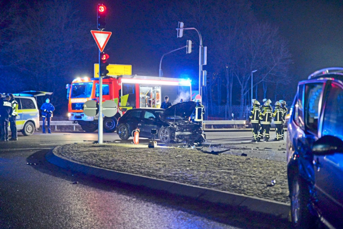 KIRCHHEIM UNTER TECK. Eine leicht verletzte Person und zwei nicht mehr fahrbereite Fahrzeuge sind die Bilanz eines Verkehrsunfalls, der sich am Samstagabend auf der Bundesstraße 465 zugetragen hat. Wie die Polizei berichtet befuhr eine 54-Jährige gegen 19.15 Uhr mit ihrem VW Touran die B465 von Kirchheim kommend in Fahrtrichtung Owen. An der Einmündung zur Auffahrt auf die Autobahn bog sie nach links ab, missachtete hierbei jedoch eine rote Ampel und kollidierte in der Folge mit dem ordnungsgemäß entgegenkommenden Mercedes einer 36-Jährigen. Durch den Zusammenstoß wurde der VW zunächst auf eine Verkehrsinsel abgewiesen und kam erst nach mehreren Metern zum Stehen. Der Mercedes drehte sich und kam schlussendlich auf der Fahrbahn zum Stehen. Die Mercedes-Fahrerin wurde durch den Aufprall leicht verletzt, musste aber nicht ärztlich behandelt werden. Im Rahmen der Unfallaufnahme stellten die Beamten fest, dass die Unfallverursacherin unter Alkoholeinfluss stand. Eine Überprüfung der Verkehrstüchtigkeit ergab einen vorläufigen Atemalkoholwert von knapp unter einem Promille, weshalb eine Blutentnahme angeordnet werden musste. Die beiden Pkw, an welchen ein Gesamtschaden von circa 25.000 Euro entstand, mussten abgeschleppt werden. Für die Dauer der Unfallaufnahme bis circa 21.30 Uhr war die B 465 in eine Richtung sowie die Auf- und Abfahrt der Autobahn voll gesperrt. Der Rettungsdienst war mit einem Rettungswagen, die Feuerwehr mit insgesamt vier Fahrzeugen und 24 Einsatzkräften ebenfalls vor Ort.