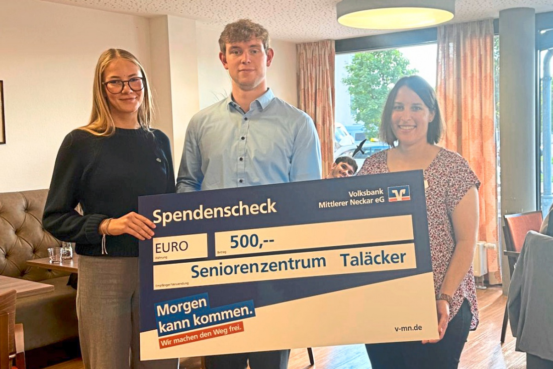 Ein besonderes Highlight war zuletzt die Übergabe eines Spendenschecks, den die Auszubildenden aus ihrem eigenen Gewinnspar-Projekt an das Seniorenzentrum überreichen durften. Damit unterstützen sie die Anschaffung einer E-Rikscha, die für Ausfahrten mit den Seniorinnen und Senioren in Wendlingen genutzt werden soll. „Solche Momente zeigen, wie viel man voneinander lernen kann – und wie wichtig es ist, gemeinsam Zeit zu verbringen. Wir freuen uns schon jetzt auf unseren nächsten Besuch“, so Nadine Wagner.
