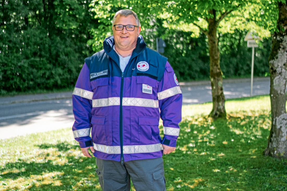 Doch wenn der Bürotag endet, beginnt oft ein ganz anderer Einsatz – einer, der ihn zu Menschen führt, die gerade den Boden unter den Füßen verloren haben. Seit vielen Jahren engagiert sich Alexander Schmidt ehrenamtlich beim Deutschen Roten Kreuz. Früher fuhr er im Rettungswagen mit, heute gehört er zur Psychosozialen Notfallversorgung (PSNV) im Landkreis Göppingen – auch Notfallnachsorge genannt. Seine Motivation: „Ich habe oft erlebt, wie schwer es ist, Menschen nach einem Notfall einfach zurückzulassen – vor allem, wenn jemand verstorben war. Ich wollte bei den Menschen bleiben, helfen, begleiten.“ 2019 ließ er sich zum Notfallseelsorger ausbilden – auf Initiative kirchlicher Träger, die gemeinsam mit dem DRK ein tragfähiges Netzwerk aufgebaut haben. Ziel ist, für Menschen da zu sein, die durch plötzliche Not- oder Unglücksfälle aus dem Leben gerissen werden.
