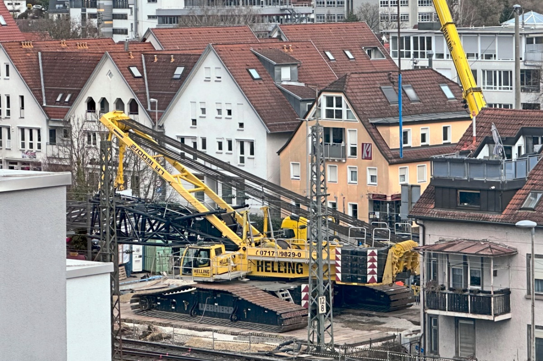 Großkran für Neubau der Bahnunterführung ist in Nürtingen angekommen