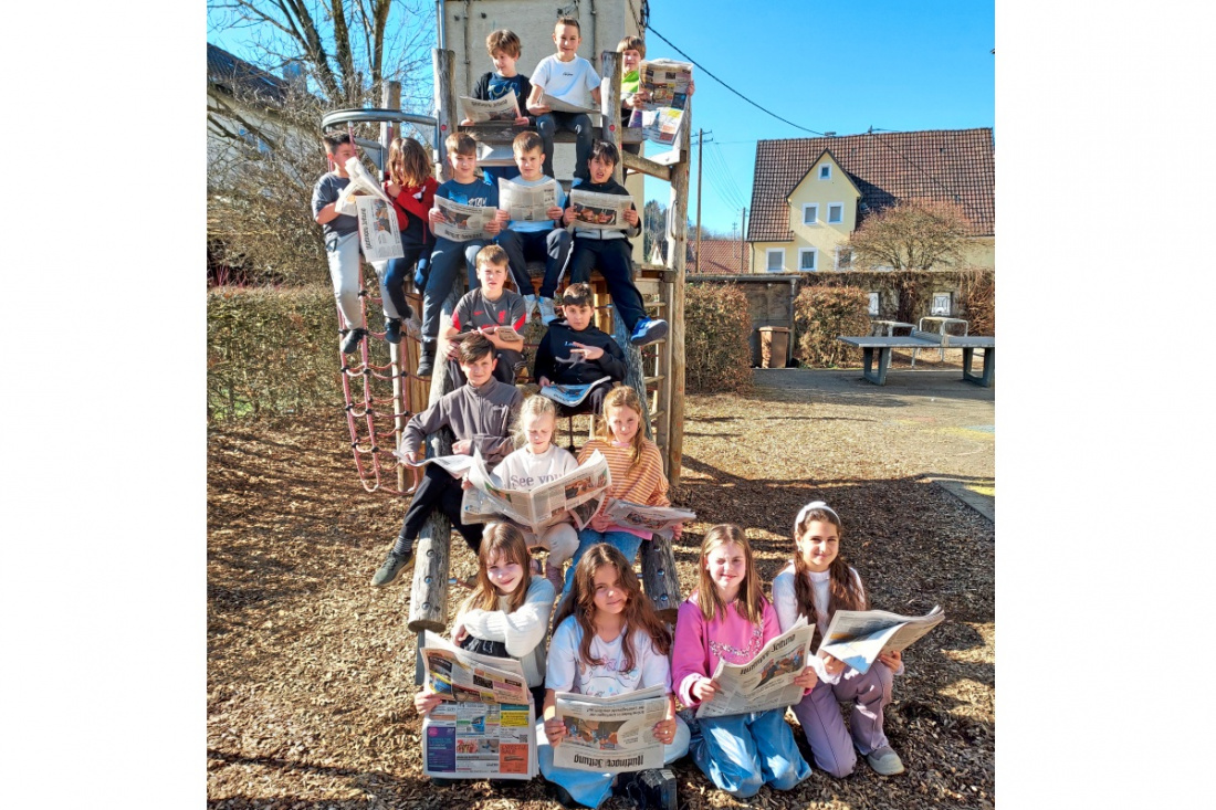 LINSENHOFEN. Sonnige Projektgrüße erreichten uns aus Linsenhofen. Im Täle lesen die Viertklässler ihre Nürtinger Zeitung sogar auf dem Klettergerüst. Paula Prints Bitte: Immer gut festhalen, liebe Kinder!