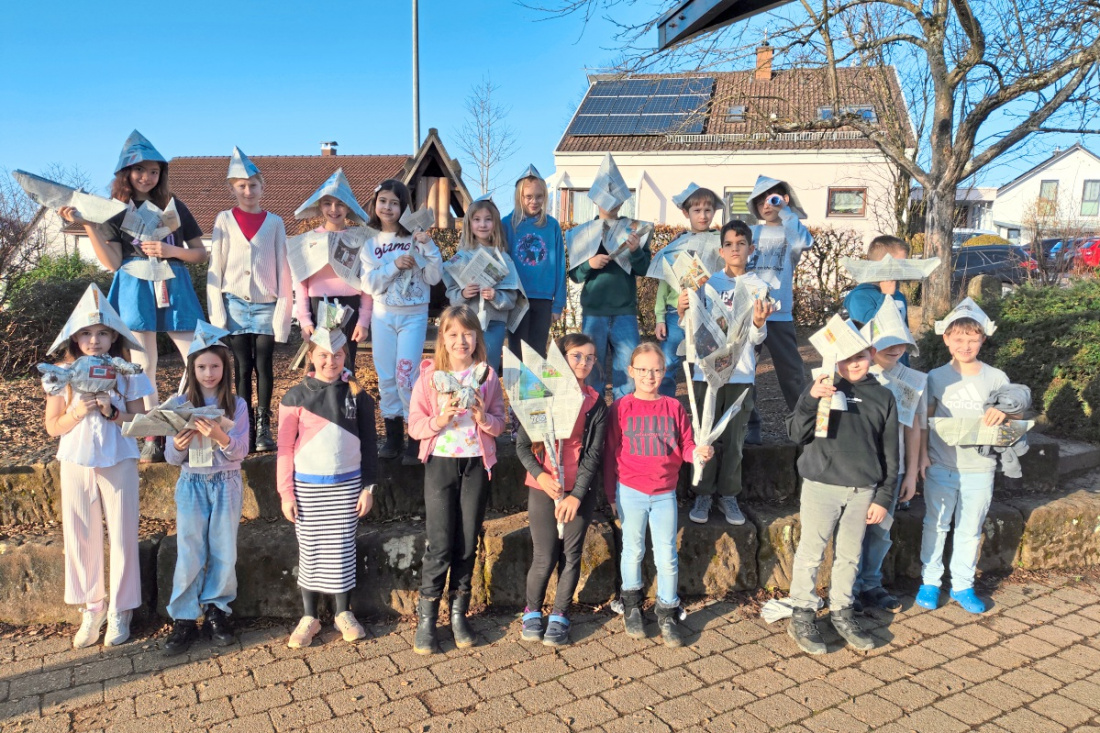 TISCHARDT. Die Schülerinnen und Schüler der Kirchertschule in Tischardt beweisen: Auch wenn man die Zeitung bereits gelesen hat, kann man mit ihr noch etwas anfangen. Man kann zum Beispiel aus gelesenen Zeitungen Kleidung und Blumen und andere Dinge gestalten.
