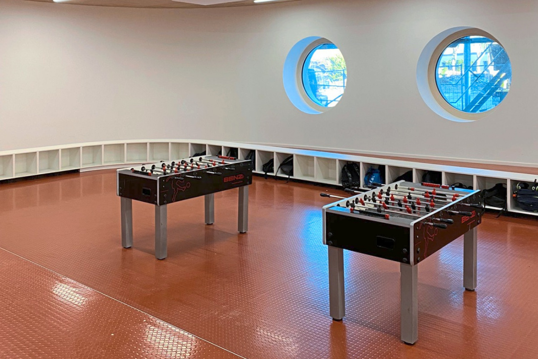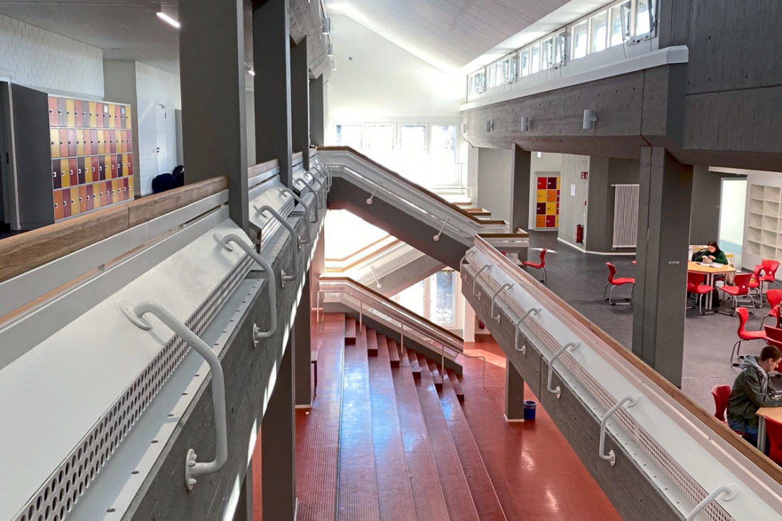 Neben all diesen Optionen gäbe es noch reichlich andere Aufenthaltsmöglichkeiten, wie eine Schülerlounge mit Tischkickern und eine große beheizte Sitztreppe.