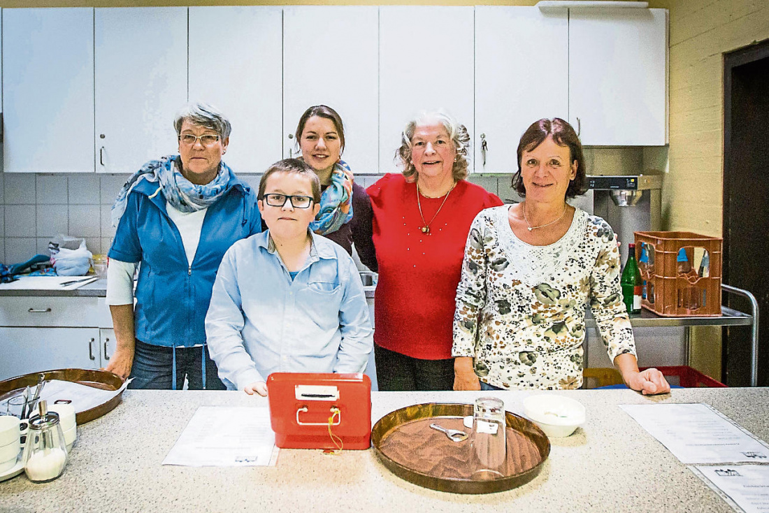 Eine Traditionsveranstaltung erwies sich einmal mehr als enorme Hilfe für Menschen in Not: Beim Schwarzwurst-Turnier kamen im Gemeinschaftshaus im Roßdorf 1400 Euro zusammen. Das lag nicht nur an den über 100 Binoklern und Skatbrüdern, die engagiert, fair und fröhlich um den Sieg in ihren Disziplinen kämpften, sondern auch am Team der Bürgervereinigung Roßdorf, das das gesamte Vesper stiftete und sich auch sonst mit Elan und Engagement um das leibliche Wohl der Gäste kümmerte. Unser Bild zeigt von links Regina Haika, Viola Finger, Karin Möck und Elke Maisch. Im Vordergrund Paul Weber, der Turnierleiter-Vize seines Vaters Bernd beim Skat. Nochmals allen herzlichen Dank. Foto: Just