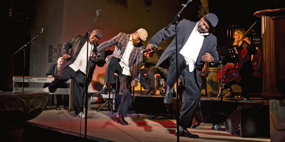 „Aller guten Dinge sind drei“: Dieses Sprichwort bewahrheitete sich am Martinstag: Zum dritten Mal waren die aus Zimbabwe stammenden Sänger Vusa, Ramadu und Blessings (so stehen sie immer von links nach rechts auf der Bühne) und der Österreicher Roland Guggenbichler zu Gast beim Festival der Hoffnung, zum dritten Mal ließen sie europäische Klassik und Folklore aus dem südlichen Afrika miteinander verschmelzen, zum dritten Mal rissen sie ihr Publikum mit – und zwar mitten hinein in einen Freudentaumel.