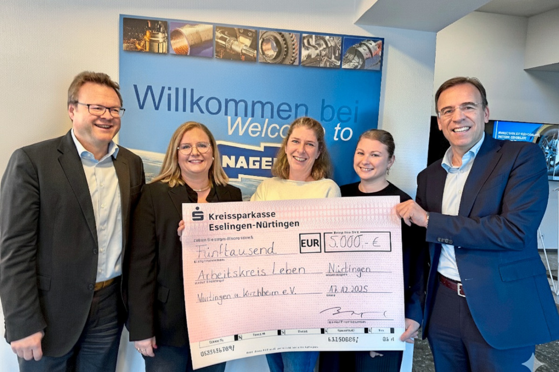 NÜRTINGEN. Der Arbeitskreis Leben Nürtingen-Kirchheim erhält eine Spende in Höhe von 5000 Euro von der Nürtinger Firma Nagel Technologies. Mit dem Beitrag unterstützt das Unternehmen die kostenfreien Beratungs- und Begleitangebote für Menschen in Lebenskrisen sowie die Präventionsarbeit mit Jugendlichen im Landkreis Esslingen. „Der Arbeitskreis Leben ist verlässlich erreichbar, wenn Menschen nicht mehr weiterwissen – und genau das macht seine Arbeit so wertvoll. Still, respektvoll und hochwirksam leistet der Verein einen unverzichtbaren Beitrag für unsere Region. Dieses Engagement unterstützen wir aus voller Überzeugung“, so die beiden Geschäftsführer der Nagel Technologies, Bernd Nagel und Claus-Ulrich Lott, in einem gemeinsamen Statement.