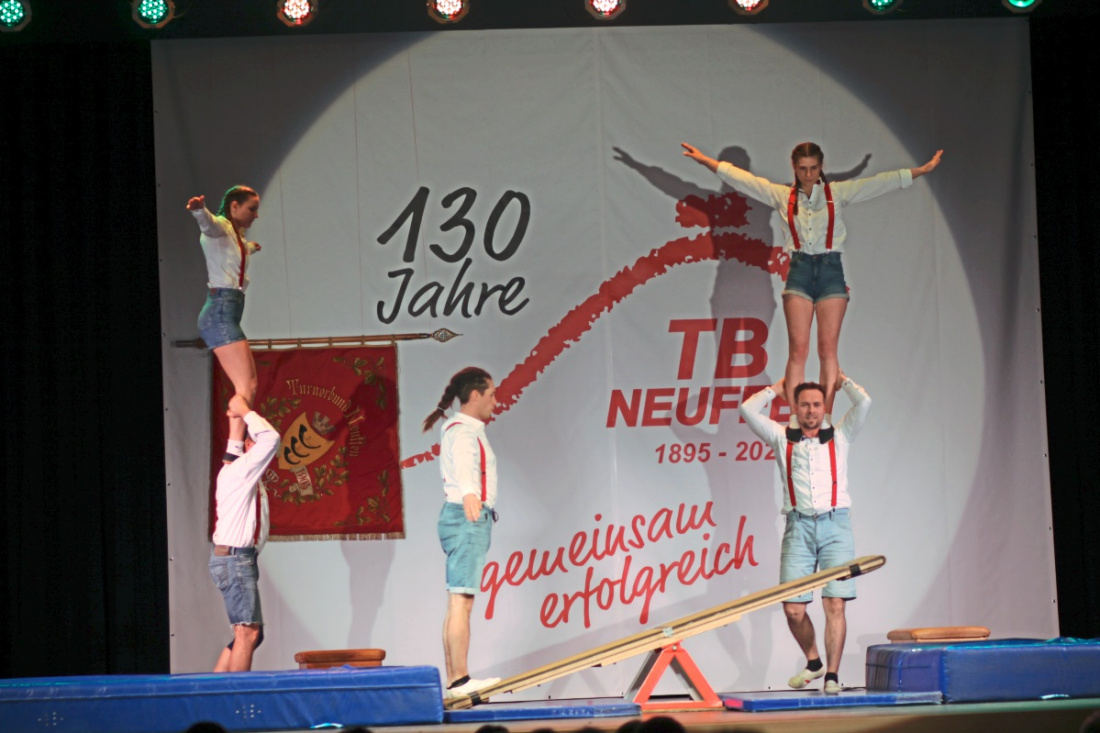 NEUFFEN. Mit einer eindrucksvollen Jubiläumsveranstaltung hat der TB Neuffen sein 130. Vereinsjubiläum gefeiert. Souverän durch den Abend führte Helmut Meyer. Rund zwei Stunden lang boten die Akteure ein abwechslungsreiches Programm: Die Bundesliga-Turnerinnen des SV Hülben, die Hip Skip Crew vom Fitnesstraum Nürtingen sowie die TB Jumpers begeisterten das Publikum in der mit 450 Personen voll besetzten Halle.