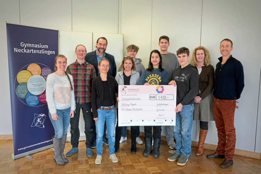 NECKARTENZLINGEN. Mit einem großen Schulfest hat das Gymnasium Neckartenzlingen vor den Sommerferien den Abschluss des Projekts „Schulhausgestaltung“ gefeiert und die neugestalteten Räume der Öffentlichkeit vorgestellt. Neben Bewirtung, gemütlichem Beisammensein und der Vorstellung des neuen Schulleiters gab es zur Freude vieler Besucher auch eine Tombola, deren Erlös nun der Erziehungshilfestelle (EHS) Oberer Neckar in Neckartenzlingen für soziale Zwecke zur Verfügung steht.