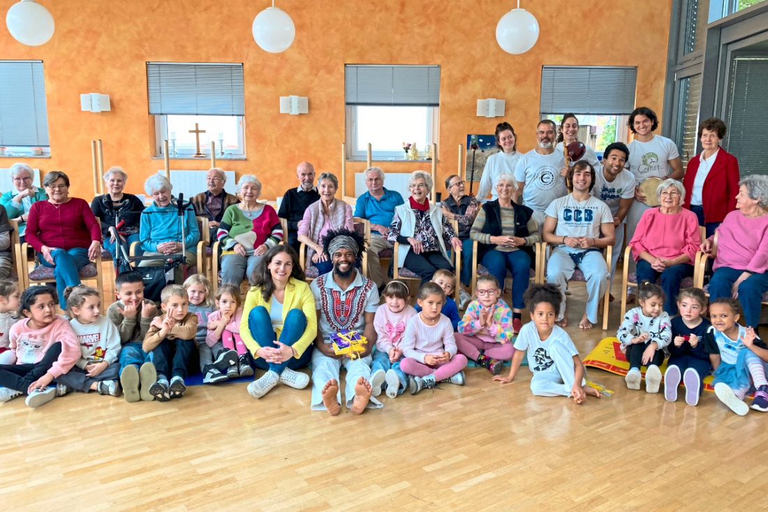 Der aus São Paulo stammende Gugu zog alle schnell in seinen Bann und bot viele Möglichkeiten für das Publikum, mitzumachen. Die Kinder übten konzentriert Bewegungsabläufe und alle zusammen klatschten Rhythmen, sangen gemeinsam und machten sogar Capoeira-Übungen auf dem Stuhl. All das untermalt von einem rhythmischen Klangteppich aus Berimbau, Tamburin und Gesang.