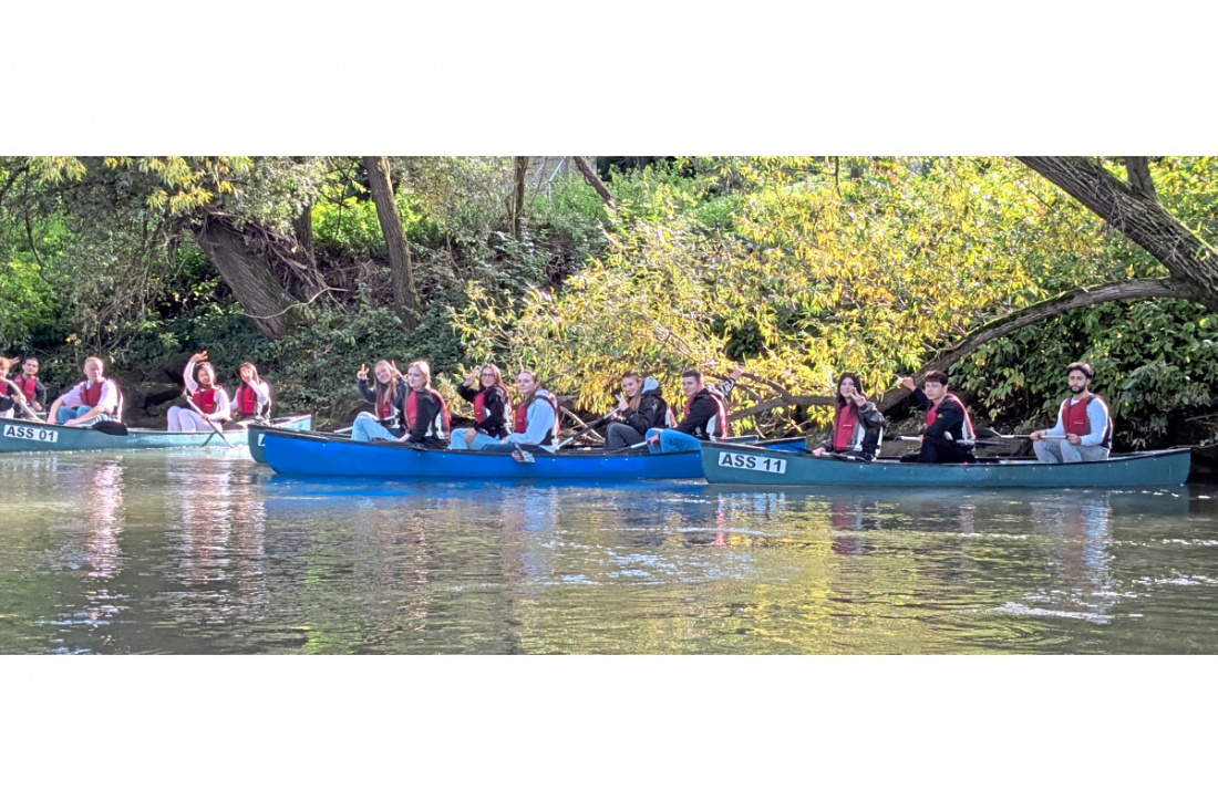 Mittags stärkten sich die Schüler in der nur wenige Minuten entfernt liegenden Mensa der Philipp-Matthäus-Hahn-Schule, um dann nach Oferdingen aufzubrechen, wo die ASS-Kanadier für eine abenteuerliche Fahrt neckarabwärts bereitstanden. In kleinen Teams wagten die Schüler mit ihrer jeweiligen Klassenlehrkraft die Flussfahrt bis zum Ziel bei Mittelstadt und konnten dabei die vormittags erarbeiteten Fähigkeiten praktisch anwenden.