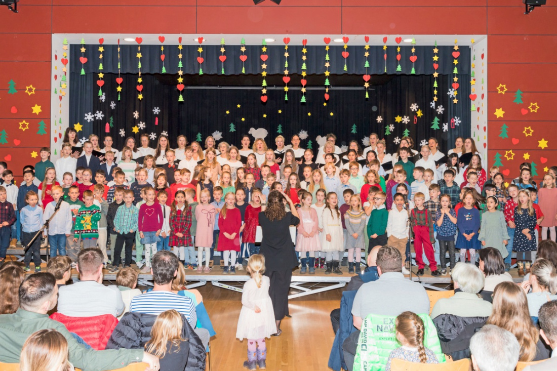 Ein Höhepunkt des Konzerts war – wie in jedem Jahr – das gemeinsam von Schulchor und Eltern-Lehrer-Chor gesungene Lied „Zündet die Lichter der Freude an“. Danach durfte auch das Publikum mitsingen – „O du fröhliche“ wurde mit allen Anwesenden, Oberstimme, Klavier und Trompete zum Besten gegeben. Dieses traditionsreiche Schlusslied riss das Publikum von den Plätzen und wurde mit Standing Ovations belohnt. Die Begeisterung war dabei nicht nur im Saal zu spüren, sondern auch bei den Sängerinnen und Sängern selbst, die mit großer Freude und sichtbarem Stolz auf der Bühne standen.