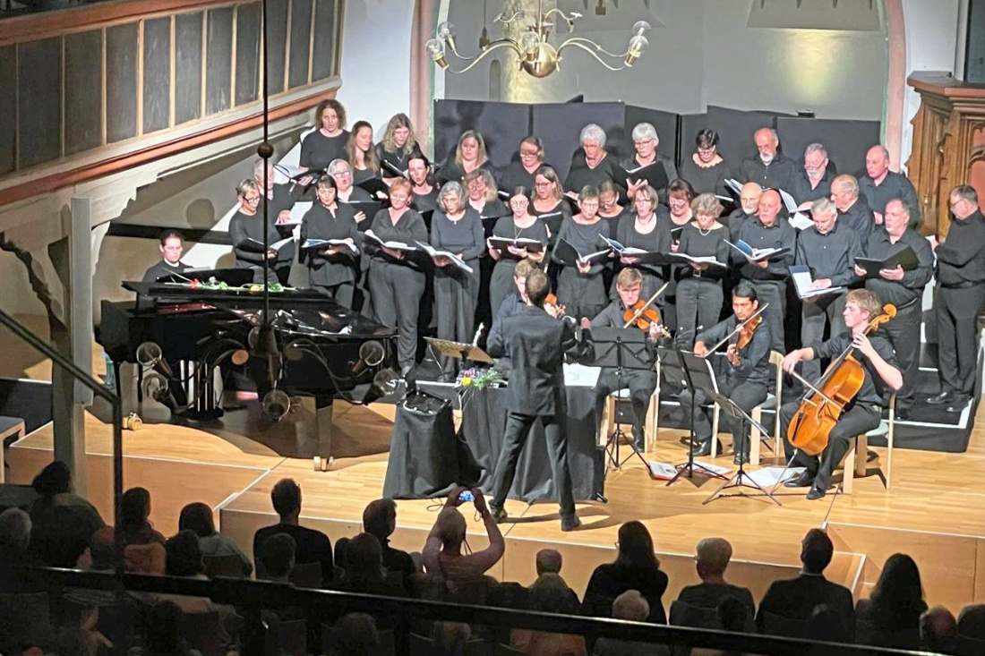 Der Dank der Sprecherin des Vereins galt abschließend dann zunächst dem Publikum für sein Kommen und seine durch den anhaltenden Applaus zum Ausdruck gebrachte Begeisterung für das vorgetragene Konzertprogramm. Dann den Sängerinnen und Sängern des Chors sowie der instrumentalen Begleitung am Klavier und den Streichinstrumenten. Schließlich galt ihr Dank aber insbesondere dem Chorleiter Thimo Härter als Hauptakteur, der das anspruchsvolle Programm zusammengestellt hatte. Nicht unerwähnt lassen wollte sie aber auch die von ihm hierzu zunächst geleistete Überzeugungsarbeit gegenüber den Chormitgliedern, die für einen Laienchor insbesondere durch die beiden Kernstücke des Programms von Ola Gjeilo damit verbundene musikalische Herausforderung anzunehmen.