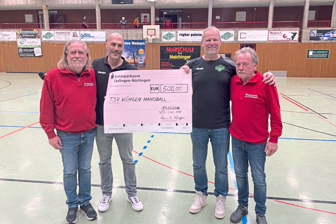 KÖNGEN. Kürzlich gab es beim Heimspiel der Männer 1 gegen den TSV Weilheim eine freudige Überraschung für die Handballabteilung – insbesondere für den Jugendbereich. Der VFB-Club 1995 G.u.S. stattete der Handballabteilung genau zu diesem Heimspiel einen Besuch ab.