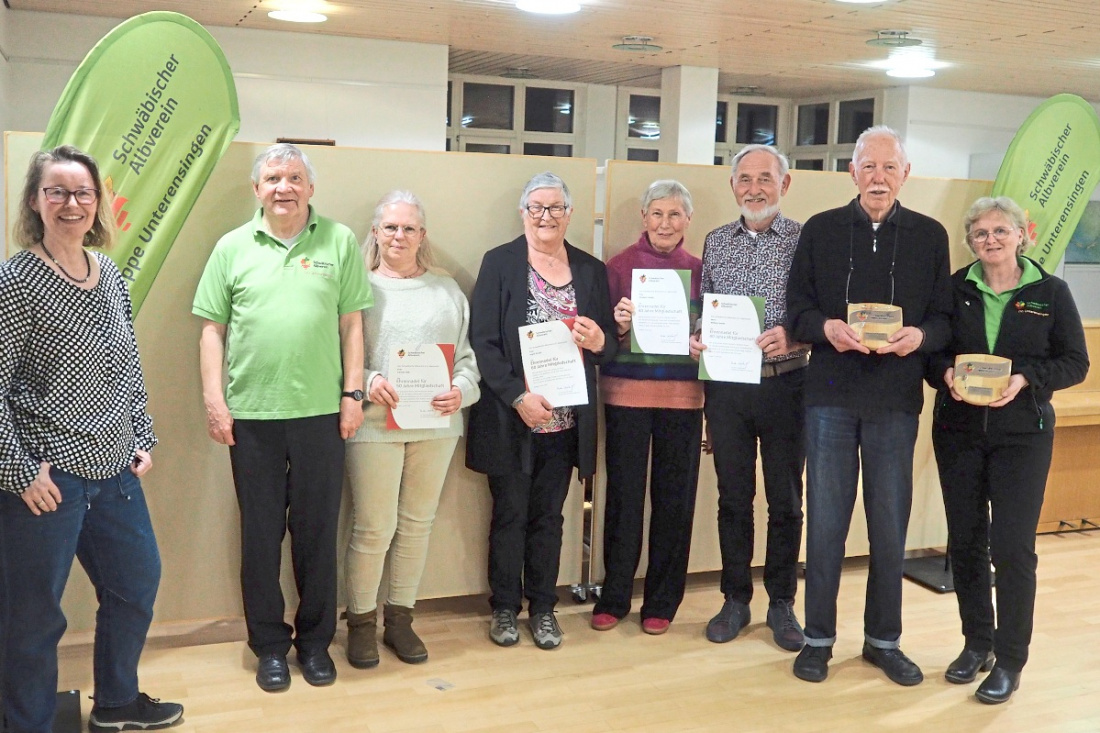 UNTERENSINGEN. Kürzlich fand die jährliche Hauptversammlung der Ortsgruppe des Schwäbischen Albvereins im Bürgertreff Unterensingen statt. 51 Teilnehmer sangen zum Auftakt das Lied „Wenn die bunten Fahnen wehen“ und gedachten der verstorbenen Mitglieder. Der 1. Vorsitzende Edgar Arnold gab einen Überblick über die verschiedenen Aktivitäten im vergangenen Jahr – von den jüngsten Tänzerinnen bis zu reisenden Erwachsenen. Dazwischen liegen Angebote für Familien, Sänger, Naturfreunde, Radfahrer, Schützen, Sportler und Wanderer. Er bedankte sich bei allen Helfern und Teilnehmern, die bei den verschiedenen Veranstaltungen im Einsatz waren. Ingrid Schüren stellte den Kassenbericht 2025 vor, es gab eine Zunahme von 1673 Euro.
