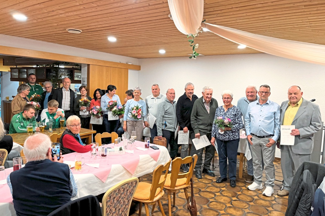 Für ihre langjährige Treue zum Verein wurden zahlreiche Mitglieder geehrt. Für 60 Jahre Mitgliedschaft wurden Ewald Gross und Lisa Müller ausgezeichnet. Seit 50 Jahren gehören Rudi Däschler, Dieter Bosch, Dietmar Lutz, Hartmut Matschiner sowie Rainer Class dem Verein an. Bereits 40 Jahre sind Thomas Schorr, Rita Jost, Sabine Ballestriero, Silvia Müller, Hans Rau, Ingrid Rau, Ingrid Noizet, Erwin Noizet sowie die entschuldigten Mitglieder Gisela Kilbertus und Monika Kleiß dabei. Für 25 Jahre Mitgliedschaft wurden Marie Theresa Richter, Helga Schellander und Doris Ganter geehrt.