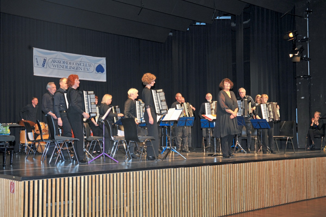 Nach dem Stück „Intermezzo sinfonico“ war Gänsehaut programmiert. Die Akkordeons zeigten ihr sanftes Piano und druckvolles Fortissimo. Mit „Porgy and Bess“ von George Gershwin kam die ganze Wildheit und gleichzeitig die Zartheit des Musicals auf die Wendlinger Bühne. Kraftvolle Passagen wechselten sich ab mit feinfühligen Soli der Konzertmeisterin Tina Lechler. Unterstützt wurde das Orchester am Schlagzeug von Lukas Sigler. Das vorletzte Stück „Magnificent Seven“ von Elmar Bernstein war ein schwungvolles Finale. „Das läuft bei euch“…, war die Äußerung einer jungen Zuhörerin. Das allerletzte Wort hatte „Wickie“. Wer kennt sie nicht? Faxe, Snorre, Tjure, Ylvi … Halvar und seine Wikinger beendeten das heldenhafte Konzert. Das Publikum bedankte sich mit anhaltendem Applaus und verweilte noch mit den Musikern im Foyer des Treffpunkt Stadtmitte.