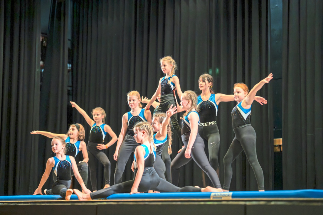 Nach einer kurzen Pause zeigten die Sichtungsgruppen der Altersklassen 7 bis 9 gemeinsam mit den Kaderathletinnen 2026 ihr Können am Schwebebalken. Auch die beiden Breitensportgruppen überzeugten mit Tanz-, Show- und Akrobatikelementen am Boden.