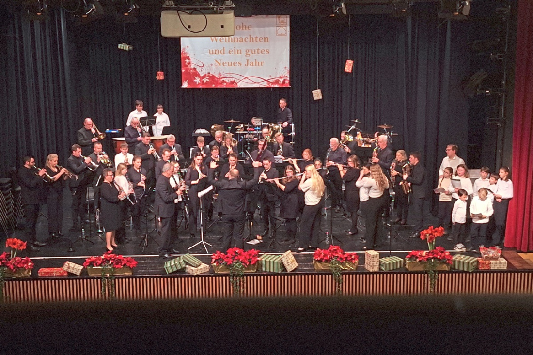 Zum Ausklang des Abends kamen Vororchester und Jugendorchester nochmals gemeinsam auf die Bühne. Zusammen mit den Musikerinnen und Musikern des Blasorchesters und dem Publikum erklangen die Weihnachtslieder „Tochter Zion“ und „Macht hoch die Türen“, die den Abend feierlich abrundeten.