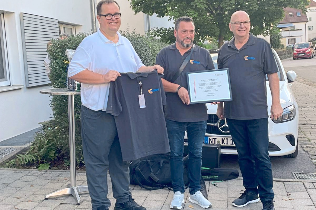 UNTERENSINGEN. Kürzlich feierte Thomas Wagner seinen 50. Geburtstag. Zu diesem Anlass überbrachte die Stammkapelle der Unterensinger Blasmusik entsprechend musikalische Grüße. Schon seit vielen Jahren engagiert sich das langjährige Mitglied und ehemaliger Musiker Thomas Wagner, Honorarkonsul in Querétaro (Mexiko), regelmäßig für die Unterensinger Blasmusik und deren Zweck, die Erhaltung und der Förderung der Blasmusik in Unterensingen. Seine Verbundenheit mit dem Musikverein hat Thomas Wagner ein weiteres Mal bekräftigt, indem er den Verein großzügig mit neuen Poloshirts ausstattete. Im Rahmen des Geburtstagsständchens fand die offizielle Übergabe der neu angeschafften Shirts von Thomas Wagner an den Vorsitzenden Klaus Wagner und Andreas Opifanti statt. Die Poloshirts tragen die Vereinsmitglieder gerne bei sommerlichen Auftritten, bei deren Arbeitseinsätzen wie zum Beispiel beim Waldfest, beim MauldaschaHock und beim Hobbykünstlermarkt sowie bei außermusikalischen Veranstaltungen und Jugendaktivitäten. Der erste Vereinsvorsitzende, Klaus Wagner, dankte Thomas Wagner im Namen aller Musiker und Vereinsmitglieder dafür, dass dieser es durch seine finanzielle Zuwendung ermöglicht hat, den Verein mit einheitlichen Poloshirts neu auszustatten.