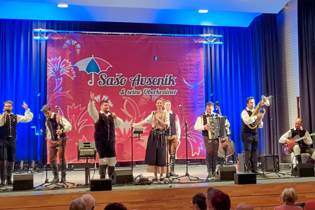Mit perfekt und zu 100 Prozent live vorgetragenem Oberkrainer-Sound begeisterten die Musiker aus Slowenien das Publikum im restlos ausverkauften Forum. Als besonderer Gast war Gregor Avsenik mit nach Großbettlingen gekommen. Der Sohn von Slavko und Vater von Sašo bereicherte den Abend mit seinem exzellenten Spiel auf der Gitarre. Perfekt harmonierte er mit Sašo und seinem Ensemble. Immer wieder gab es vom Publikum begeisternden Applaus für die Darbietungen der Musiker. Diese sorgten gegen Ende des Konzertes mit „Der Wind bringt Dir mein Lied“ für Gänsehaut-Atmosphäre und spielten die direkte Zugabe des Titels „unplugged“ vom Bühnenrand in den absolut stillen Saal des Forums.