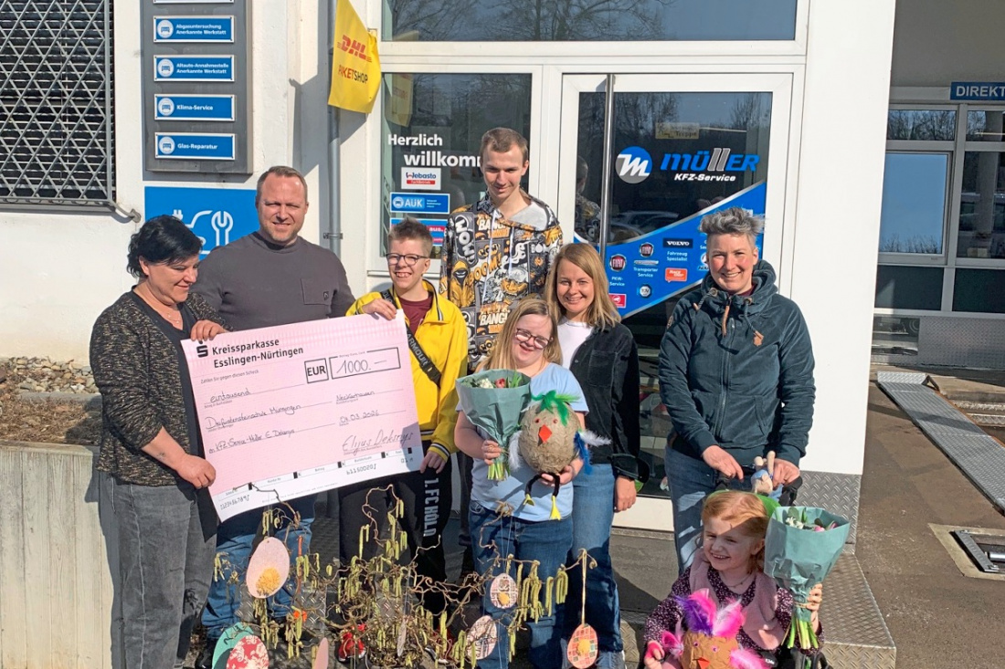 NÜRTINGEN. Schülerinnen und Schüler der Dreifürstenschule Münsingen dekorierten jüngst Fenster und Räume der Firma Kfz-Service Müller in Neckarhausen mit selbstgebasteltem Osterschmuck. Anschließend durfte sich Rektorin Tina Kaiser über einen 1000-Euro-Scheck von Elijus Deksnys freuen, der den Betrieb 2024 übernommen hatte.
