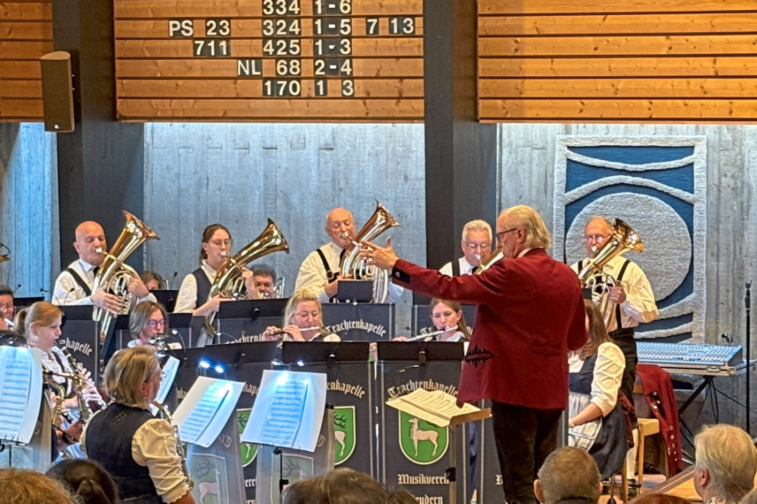 Mit „Forever Young“ erklang dann ein Lied, das viele im Publikum aus ihrer Jugend kannten. Das stimmungsvolle Arrangement von Thiemo Kraas kam in der warmen Kirchenakustik besonders gut zur Geltung. Danach setzte „Stolzes Alpenland“ einen kraftvollen Schlusspunkt des offiziellen Programms – ein Stück, das Tradition und Gefühl perfekt vereint. Doch das Publikum wollte die Musiker nicht ohne Zugaben ziehen lassen. Mit der „Spritzregenpolka“ und der „Polka mit Herz“ verabschiedete sich die Trachtenkapelle schließlich – beschwingt, herzlich und mit viel Applaus.