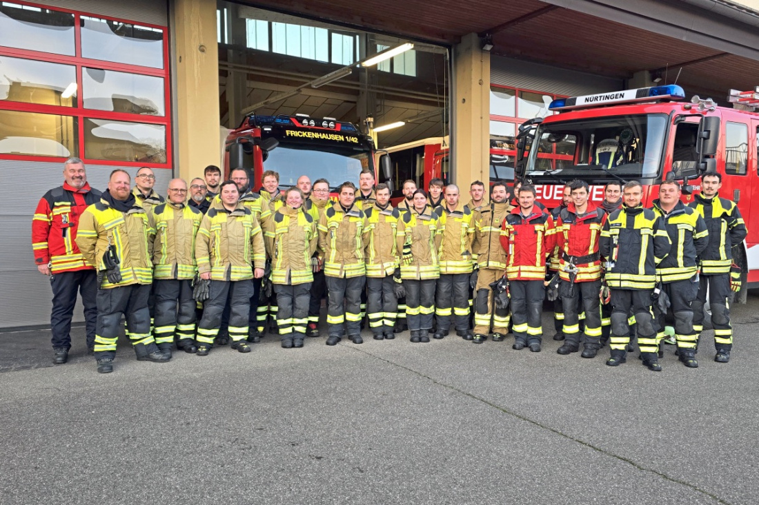 FRICKENHAUSEN. Nürtingen/Frickenhausen. Zwei Feuerwehrfrauen und 20 Feuerwehrmänner aus Beuren, Nürtingen, Schlaitdorf und Wolfschlugen absolvierten einen weiteren wichtigen Schritt in ihrem Feuerwehrleben. In 39 Stunden Ausbildung wurden die Teilnehmer auf ihre neue Aufgabe vorbereitet – der Übernahme von Verantwortung für einen weiteren Kameraden. An etlichen Terminen wurden von den Ausbildern ihr Wissen und ihre Erfahrung an die Teilnehmer weitergegeben. Das Gelernte wurde im praktischen Lösch- und Hilfeleistungseinsatz angewendet. Zum Lehrgangsabschluss mussten die angehenden Truppführer ihr Können bei einer schriftlichen Lernerfolgskontrolle und einer Abschlussübung unter Beweis stellen. Nach Theorie und Praxis konnten die neuen Truppführer ihre Lehrgangsurkunde in Empfang nehmen.