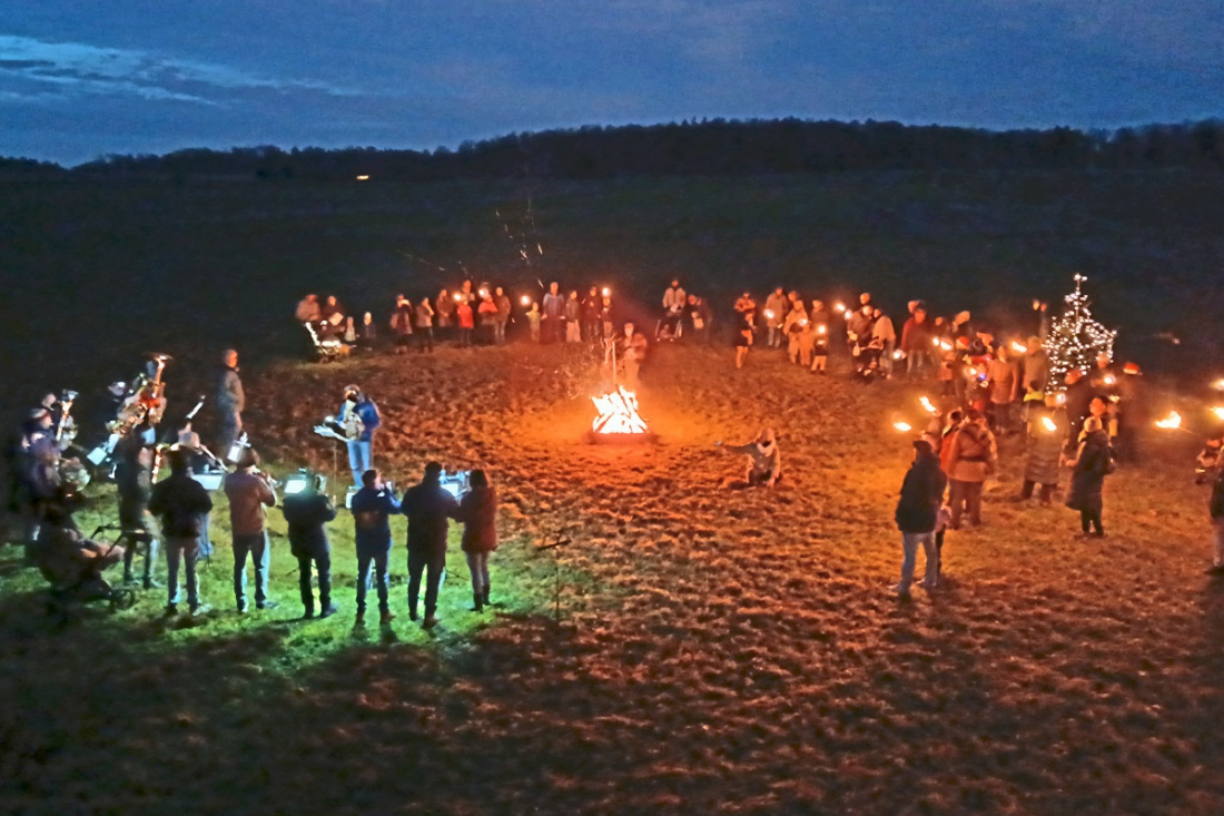 WOLFSCHLUGEN. Kürzlich fand die traditionelle Waldweihnacht in Wolfschlugen statt – ein stimmungsvolles Erlebnis, das zahlreiche Eltern, Großeltern und die Kinder beziehungsweise Enkelkinder in den winterlichen Wald lockte. Pünktlich um 17 Uhr versammelten sich die Teilnehmenden am Waldfriedhof. Nachdem die Fackeln verteilt und entzündet waren, setzte sich der Zug in Bewegung. Der Weg führte durch den ruhig daliegenden Wald hinaus zur Weihnachtswiese, die in warmen Licht erstrahlte.