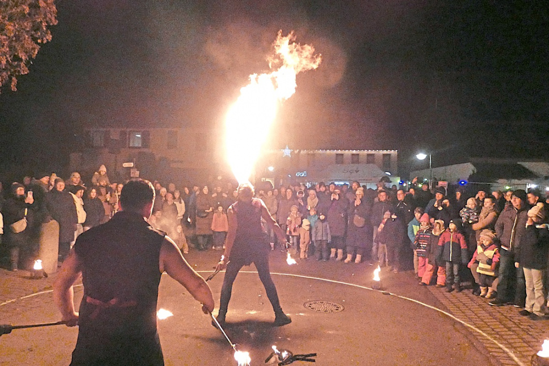 Höhepunkt ist die Feuershow von Larrisa Dworzak. Als „Dragana, die Drachentochter“ vom Nanu-Traumtheater aus Esslingen bezauberte und verzauberte sie die Kinder samt ihren Eltern mit Feuer.