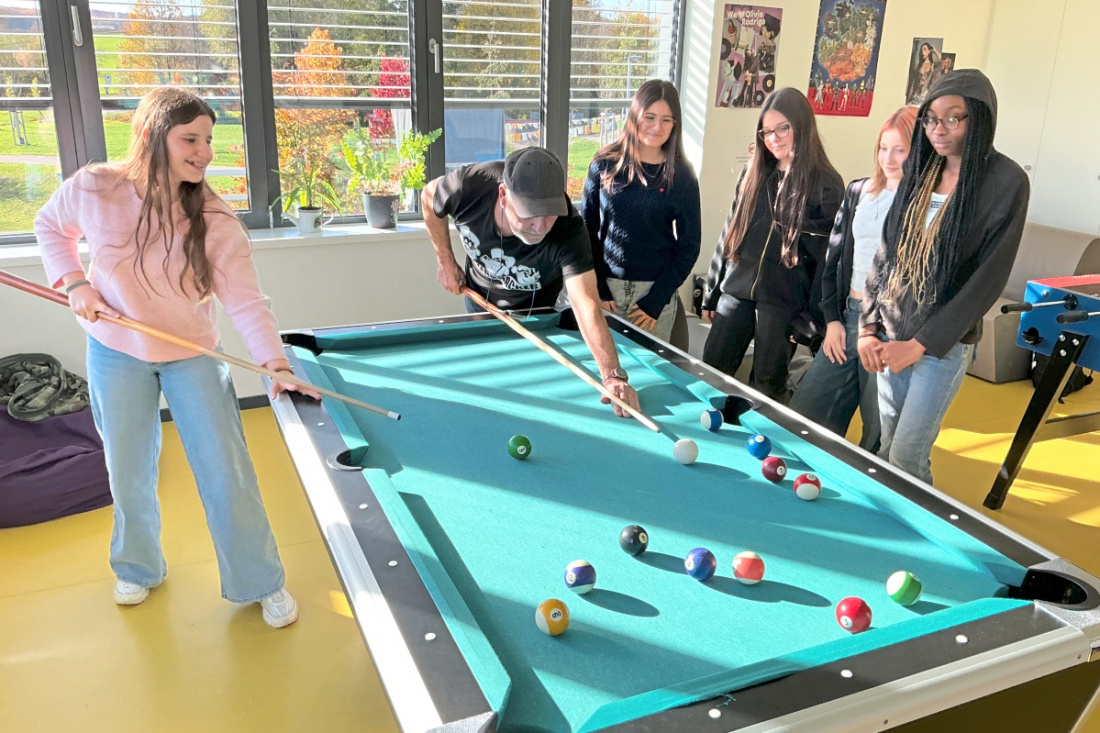 An drei bis vier Tagen haben unsere Schülerinnen und Schüler einen Ganztag. Die Mittagspause wird durch das Jugendhaus betreut und in unserer Mensa gibt es an vier Tagen in der Woche ein frisch zubereitetes leckeres und gesundes Essen.
